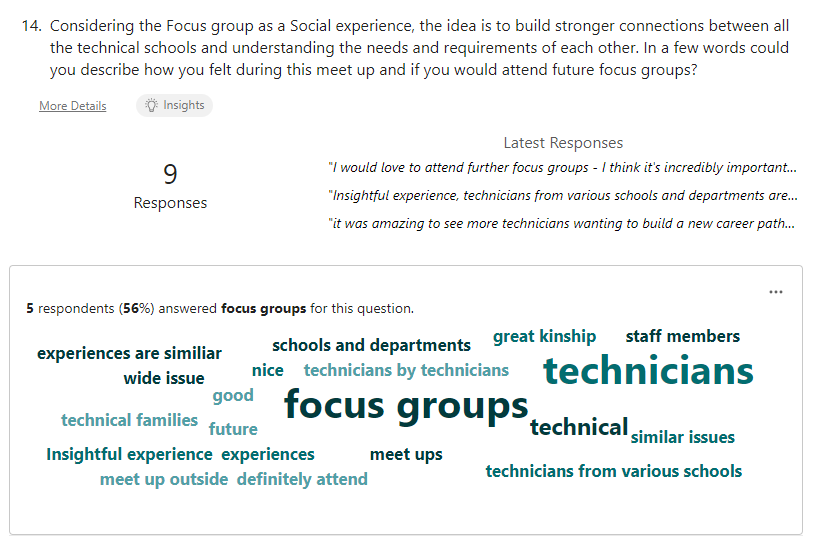 Response 4: “Insightful experience, technicians from various schools and departments are experiencing similar issues. Indicating this is a University-wide issue. More sessions like this with actionable outcomes should be considered.”